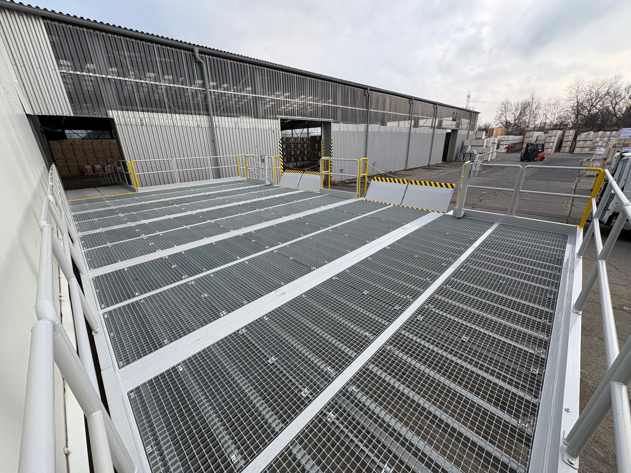 Pro zákazníka jsme zajistili mobilní rampu, která výrazně usnadnila přístup vysokozdvižných vozíků do kontejnerů. Díky jednoduchému přesunu a rychlému nasazení do provozu se proces manipulace se zbožím stal bezpečnějším a časově úspornějším.